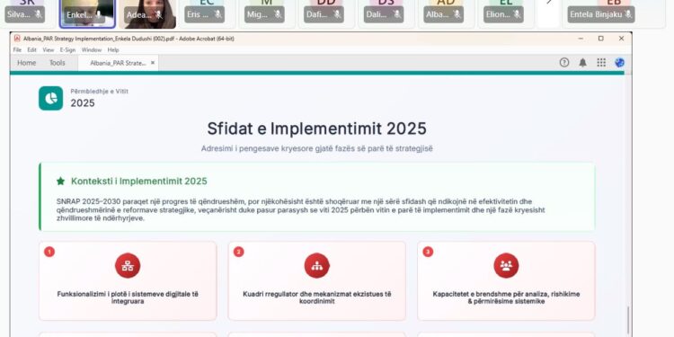 Në kuadër të procesit të monitorimit vjetor për vitin 2025 të Strategjisë Ndërsektoriale për Reformën në Administratën Publike (SNRAP) 2025 – 2030 dhe Planit të Veprimit 2025 – 2027, Ministri i Shtetit për Administratën Publike dhe Antikorrupsionin thirri mbledhjen e Ekipit Tematik “Mirëqeverisja” nën ombrellën e Grupit të Menaxhimit të Integruar të Politikave “Demokracia, Shteti i së Drejtës dhe Mirëqeverisja”. Ky takim u mbajt në zbatim të Urdhrit Nr. 90, datë 01.08.2023, të Kryeministrit, “Për marrjen e masave për zbatimin e qasjes së gjerë sektoriale/ndërsektoriale, si dhe ngritjen dhe riorganizimin e mekanizmit sektorial/ndërsektorial të integruar”.Ne takim moren pjesë përfaqësues të shoqërisë civile, akademisë dhe ekspertizës së pavarur të angazhuar aktivisht në zbatimin e Reformës në Administratën Publike.